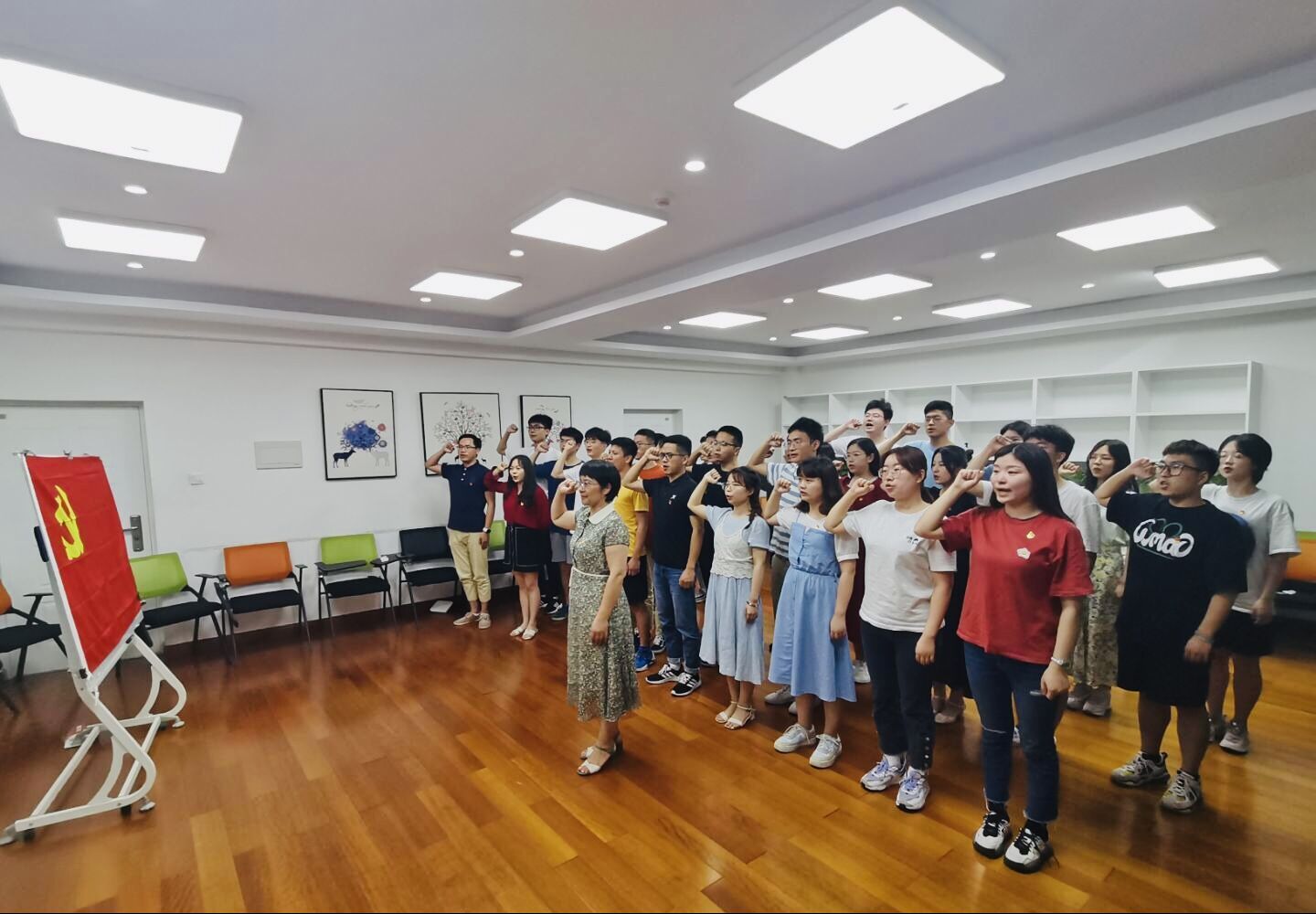 会议第四项,由支部低年级同志为17级毕业生党员们表演了诗朗诵《别说再见,我已开始想念》和合唱《送别》,以此来表达对17级毕业生党员们的不舍和祝福。